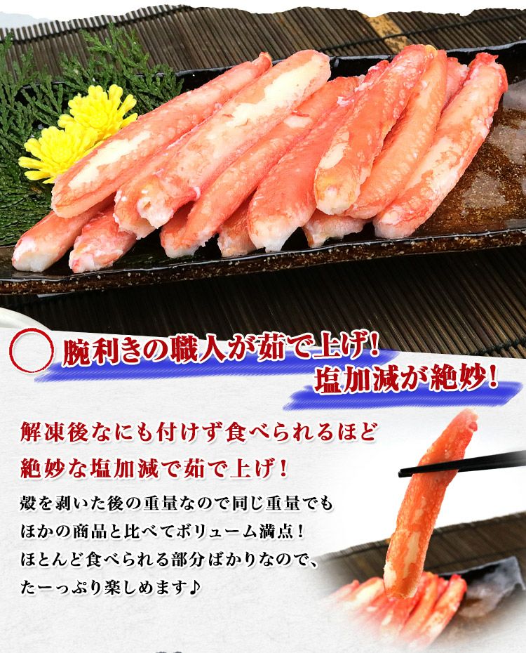 他の画像を見る ボイル ずわいがに 棒肉 300g ポーション ズワイガニ かに 蟹 カニ 寿司 冷凍便 お取り寄せグルメ 食品 ギフト 海鮮 当店特別価格 ¥ 3,680 税込 カートに入れる お気に入りに登録する