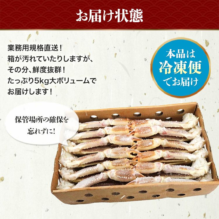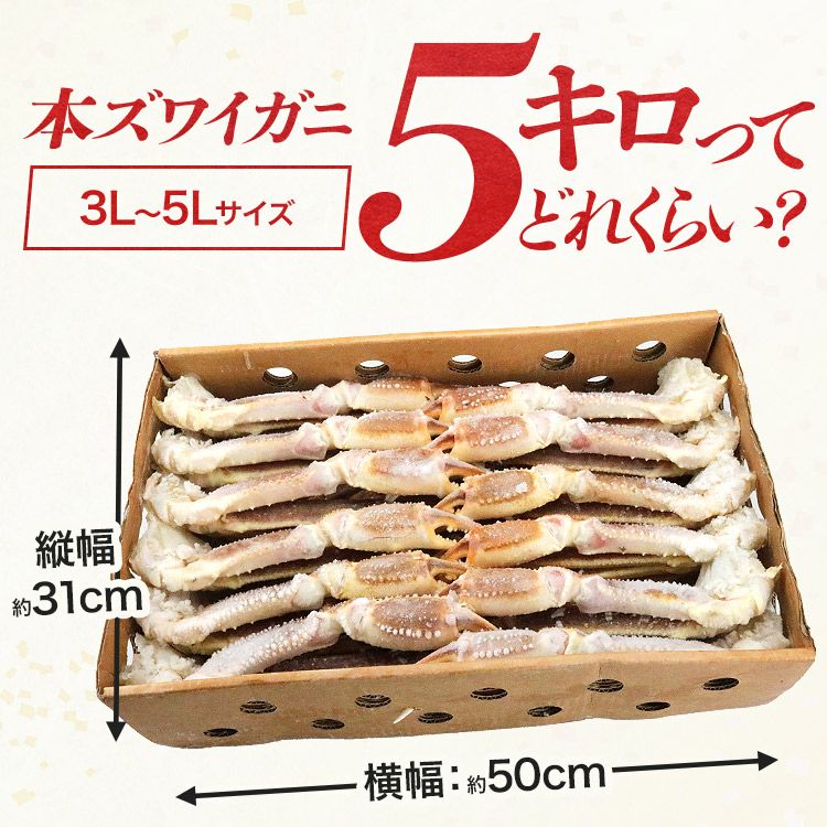 他の画像を見る 超特大 生 ずわい蟹 5kg 3L-5Lサイズ 蟹 ズワイガニ カニ かに 鍋 業務用 ずわいがに 食べ放題 カニ 蟹脚 セクション 当店特別価格 ¥ 24,800 税込 カートに入れる お気に入りに登録する