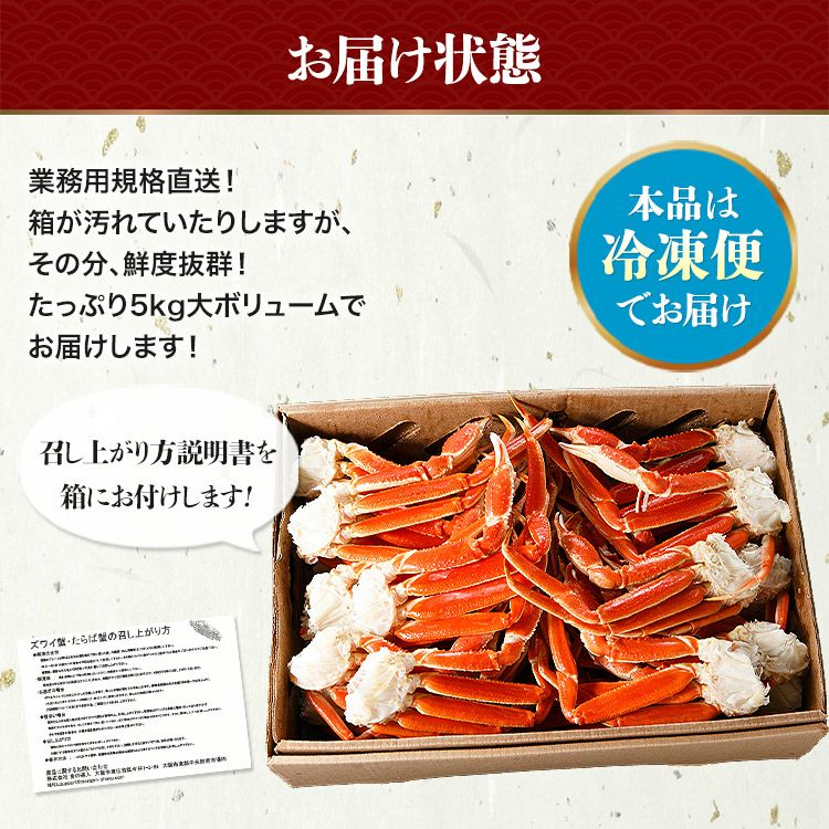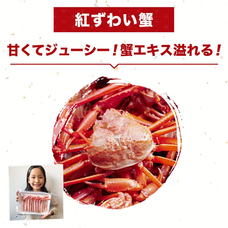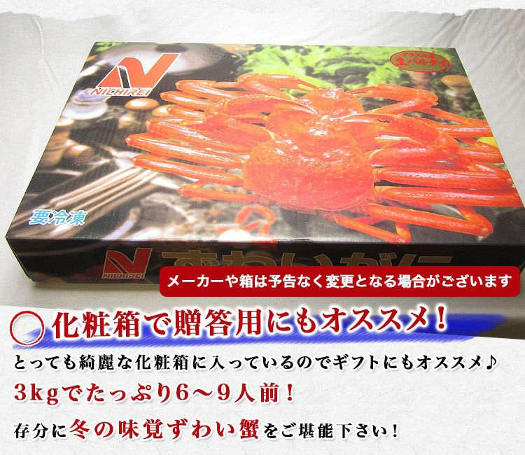 他の画像を見る ずわいがに 生 贈答用 特大5L 生ずわい蟹 肩脚 セクション たっぷり 3kg 化粧箱入り かに カニ 蟹 ギフト 当店特別価格 ¥ 26,800 税込 カートに入れる お気に入りに登録する