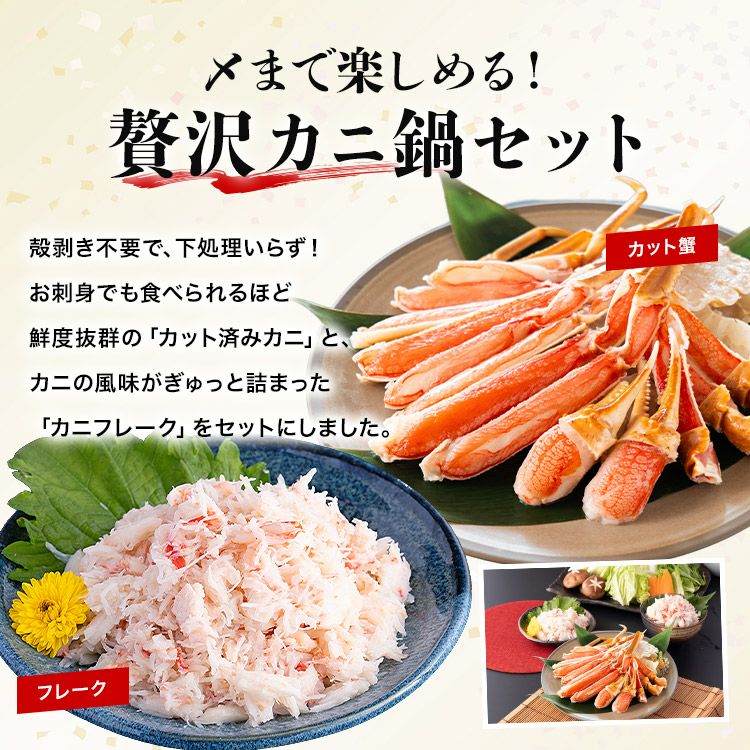 他の画像を見る カニ鍋セット 本ズワイガニ ポーション 500g フレーク 70g×5 ずわい蟹 かに カニ 剥き身 SALE 定価 ¥ 7,280 のところ 当店特別価格 ¥ 6,880 税込 カートに入れる お気に入りに登録する