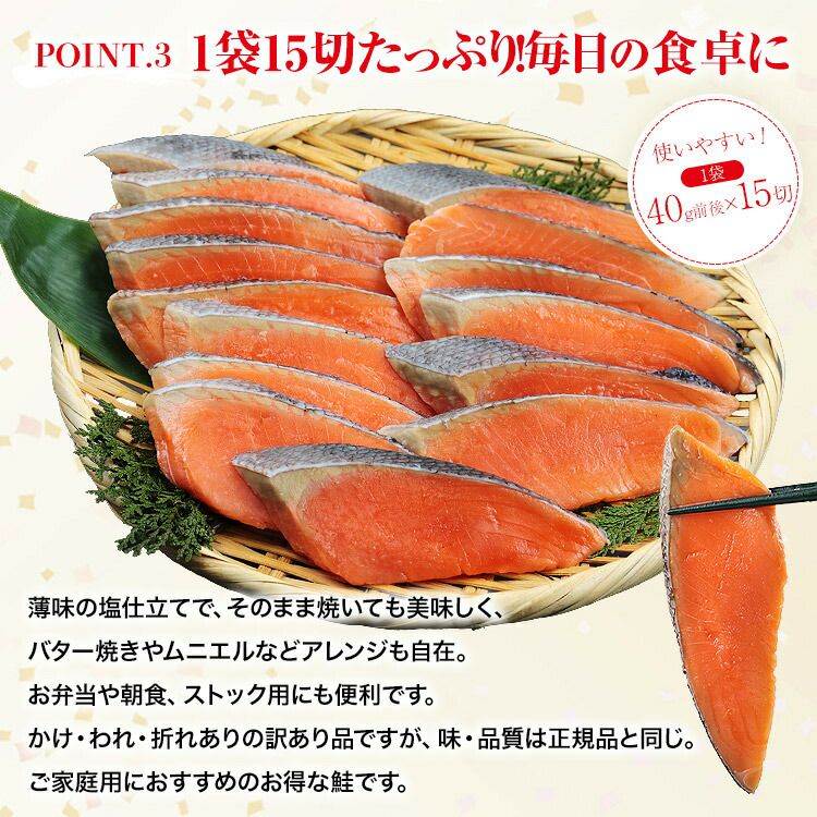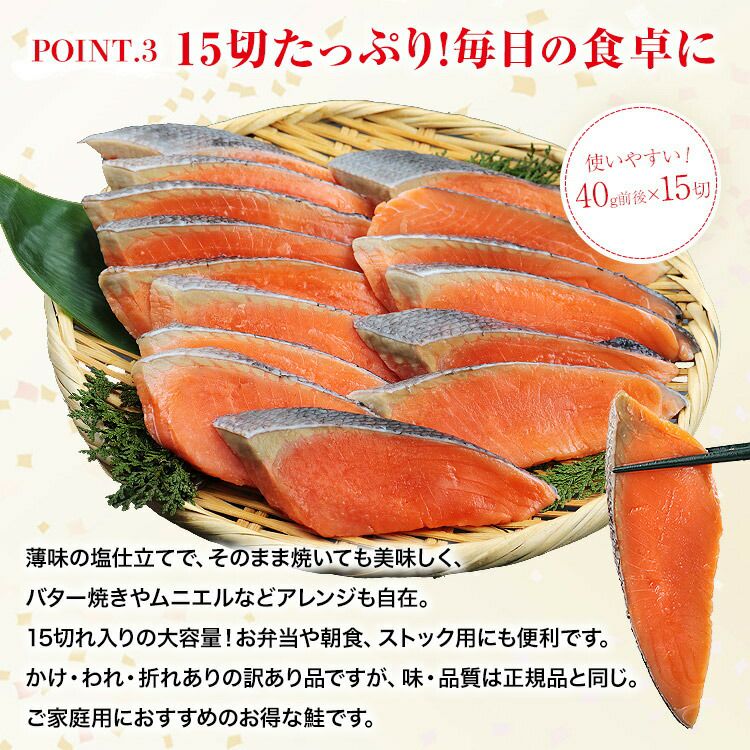 他の画像を見る 銀鮭 骨取り 切身 600g(15切) 薄塩 訳あり 処理済み チリ産地 さけ しゃけ 鮭 骨なし 薄切り お弁当 時短 定価 ¥ 2,980 のところ 当店特別価格 ¥ 2,480 税込 カートに入れる お気に入りに登録する