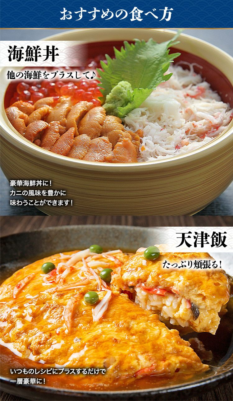 他の画像を見る ズワイガニ カニ丼 5食 水ポチャ解凍 すぐ美味しい フレーク 蟹丼 5人前 かに 蟹 カニ お取り寄せグルメ 食品 ギフト 海鮮 SALE 定価 ¥ 2,980 のところ 当店特別価格 ¥ 1,990 税込 カートに入れる お気に入りに登録する