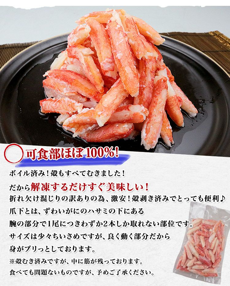 他の画像を見る 訳あり ボイルズワイガニ 爪下 むき身 500g かに カニ つめ下 蟹 剥き身 食べやすい ギフト お歳暮 お取り寄せグルメ 食品 当店特別価格 ¥ 4,280 税込 カートに入れる お気に入りに登録する
