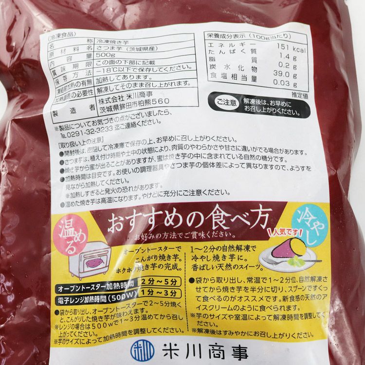 他の画像を見る 焼き芋 冷凍 500g 茨城県産 紅はるか ミニサイズ 国産 レンジで温め 自然解凍 ヘルシー おやつ スイーツ やきいも さつまいも 冷凍便 当店特別価格 ¥ 1,980 税込 カートに入れる お気に入りに登録する