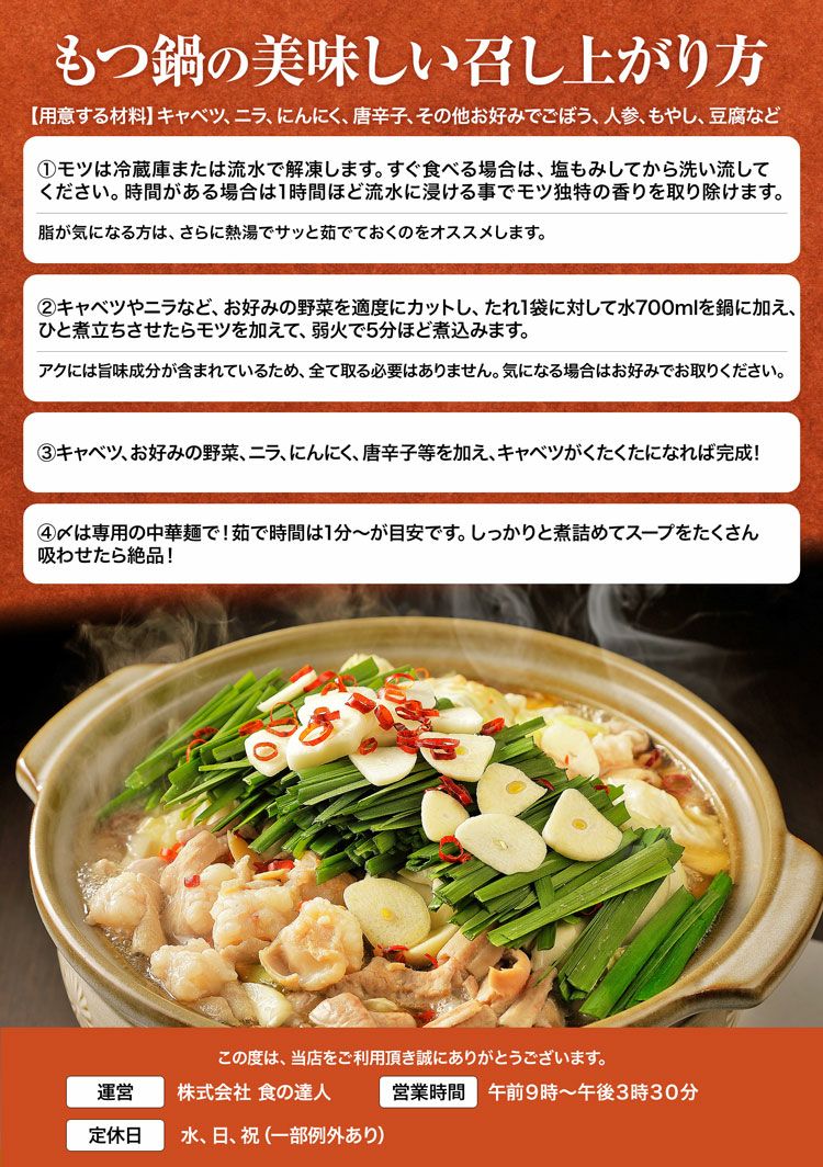 他の画像を見る 牛もつ鍋 セット ホルモン1kg 大盛 4-6人前 200g×5袋 モツ 中華麺 5玉 オリジナルスープ 2袋 鍋 もつなべ SALE 当店特別価格 ¥ 3,480 税込 カートに入れる お気に入りに登録する